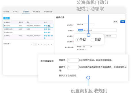 商机公海模块能够智能化的帮助企业对商机进行合理分配、管理、回收,既有商机高效利用。