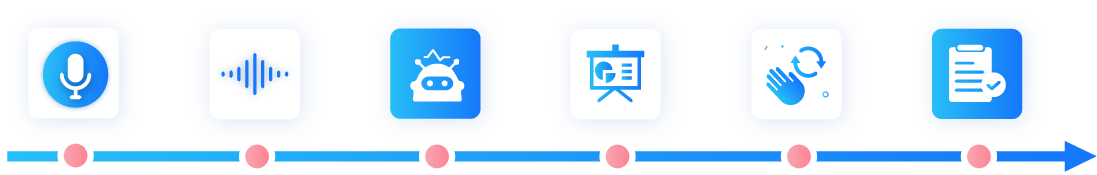 将海量非结构化录音、文本数据高效、准确的转化为结构化数据,配合人工进行数据挖掘和分析,提炼有价值信息并将数据可视化,从而为客服、运营、营销等提供支撑